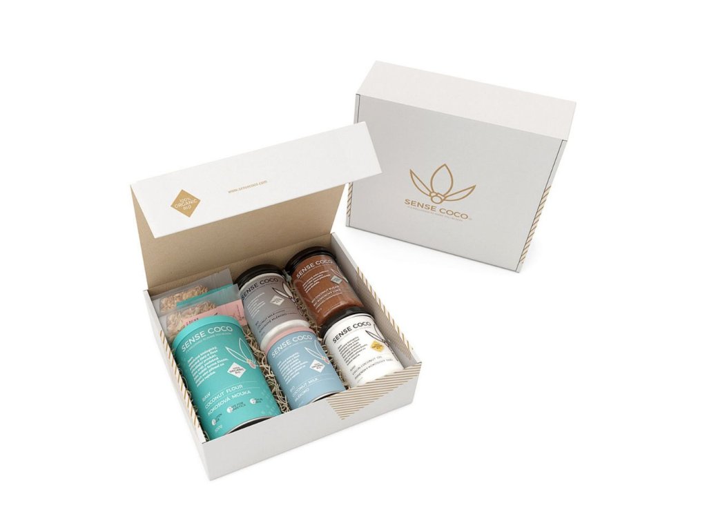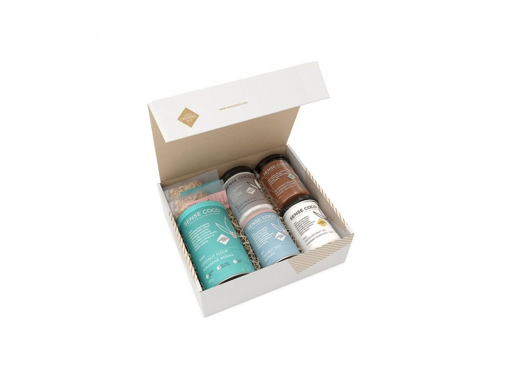 Milujete kokos v akejkoľvek forme? Tento balíček urobí radosť nielen vám, ale aj každému obdarovanému. Všetky produkty boli vybrané tak, aby chutili a nezaťažovali organizmus. Hlavnou zložkou je 100% prírodný kokos v podobe lahodne návykových chipsov s príchuťami morská soľ a javorový sirup, ale aj ďalších produktov využiteľných v teplej aj studenej kuchyni. Raw kokosová múka, prírodný kokosový cukor, raw panenský kokosový olej, kokosové mlieko. Oddajte sa jemne sladkastej a lahodnej chuti kokosu prvotriednej kvality.